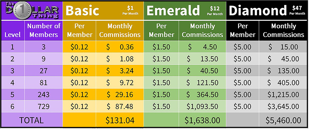 As you can see becoming an Independent Representative and building a team of Independent Reps at The1DollarThing can provide a very good monthly income. By purchasing the Basic, Emerald and Diamond Product Packages and participating in the Compensation Structure, you have the opportunity to earn over $7,000 per month, month after month!