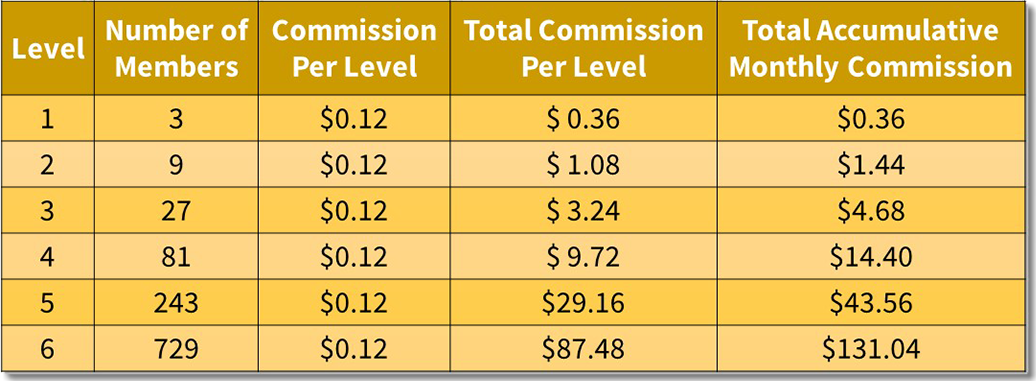 As you begin to receive override commissions and build your team, you may choose to purchase the next level product package for your business by using some of your profits.